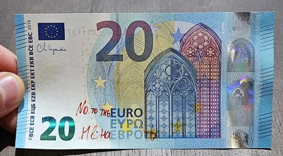Той отбеляза, че доста от банкнотите в евро, разпространявани като снимки в мрежата са надраскани и призова:
