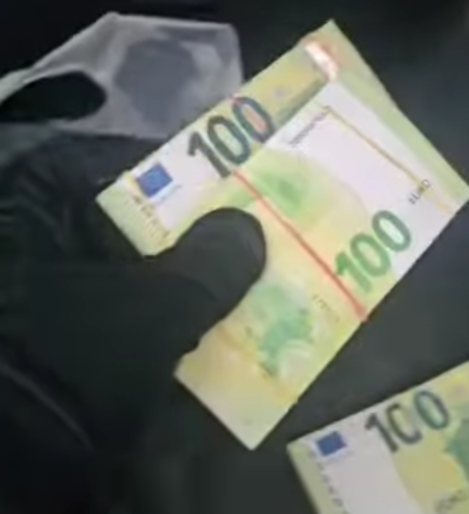 При претърсването на два автомобила и проведените лични обиски са открити голямо количество фалшиви банкноти с номинал 100 евро. До момента е потвърдено, че сумата надхвърля 500 000 евро.
